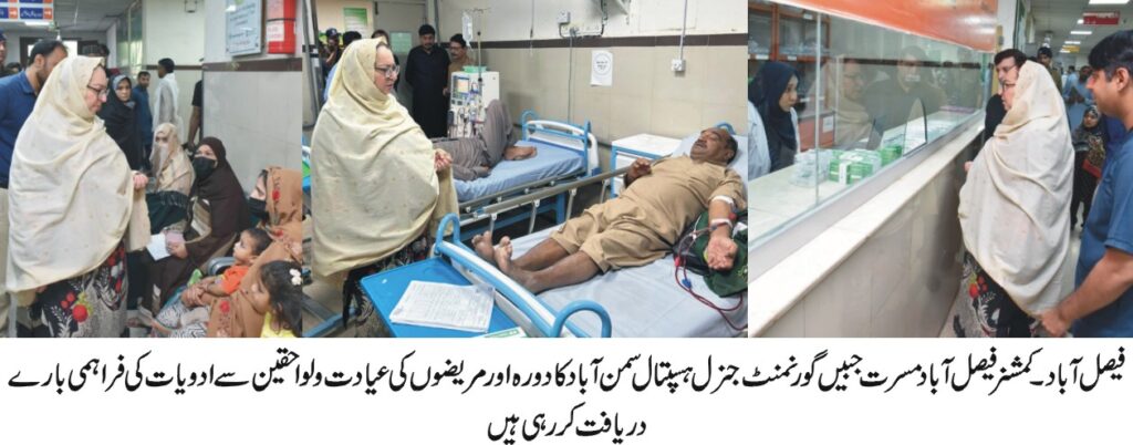 انہوں نے ویٹنگ ایریا میں موجود مریضوں، ولواحقین، سے، انتظامات بارے دریافت کیا۔انہوں نے ہسپتال کو درکار وسائل، کی فراہمی کیلئے فوری, اقدامات کی یقین دہانی کرائی۔کمشنر نے مریضوں کو علاج معالجہ کی جدید،معیاری اور تیز رفتار فراہمی, یقینی بنانے کی تاکید کی اور کہا کہ, ہسپتالوں کو شکایت فری بناناترجیح ہے ،،ن